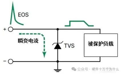 瞬态电压抑制二极管的工作原理是当电压超过其额定工作电压时,它将迅速导通并提供一个低阻抗路径,将过电压或瞬态电压释放到地或其他安全位置,从而将其限制在一个安全水平以下。