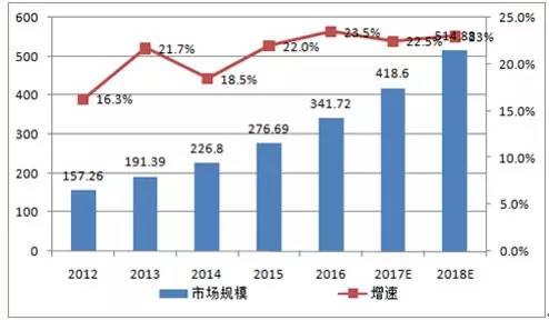 随着政策的加快推动,市场增速正呈现不断上升趋势,到2018年,预测我国信息安全行业市场规模有望达到514.88亿元,2017年、2018年行业增速预计将分别达到 22.5%%和 23.0%。